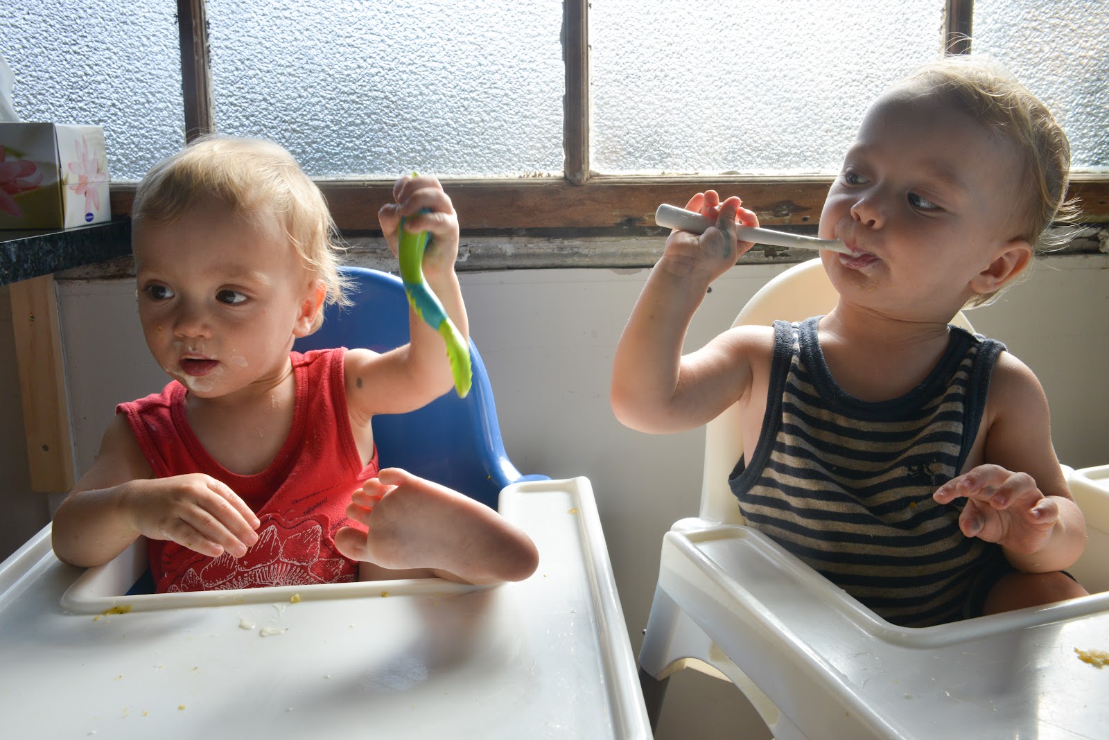 And demonstrate the unique challenges of trying to feed twins their dinner,
